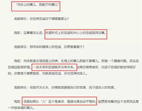许多人都替陶虹打抱不平,然而陶虹对此大方回应,我们是开放式婚姻,“肉体出轨不算什么”让吃瓜群众惊掉下巴。