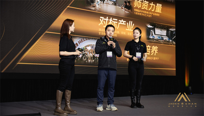自2021年起,成龙电影A计划携手成龙影视传媒学院建立校园联盟,现已形成人才培养与产业资源双向输送机制。成龙影视传媒学院执行院长杨恒教授与专任教师夏晗老师共同登台介绍:成龙电影A计划是学院教育实践的核心载体,双方正通过系统化培养体系及行业资源共享,持续完善青年电影人才可持续发展机制。