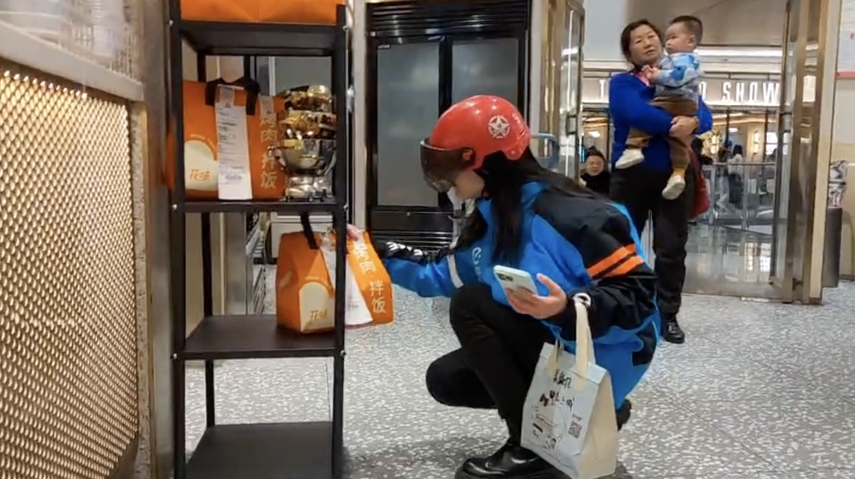 冯佳奇体验送外卖。