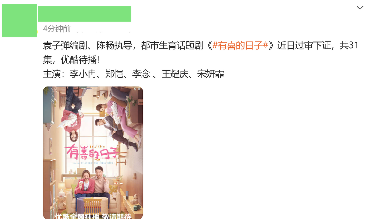 《有喜的日子》过审下证,相信要不了多久就会上线优酷与观众见面,该剧阵容雄厚,主创班底更是实力不俗,看来都市剧又要迎来一部爆款作品了。
