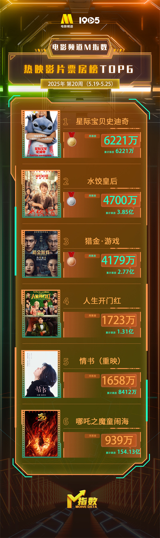 电影频道M指数2025年第20周(5.19-5.25)发布