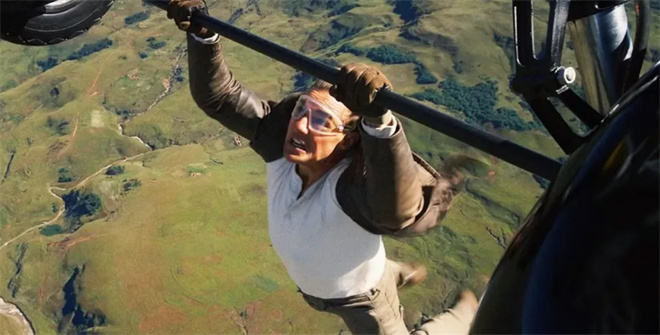 而更令人无法想象的是这一切都是实拍的,没有借助任何CG和绿幕,唯一的特效就是后期擦除了阿汤哥佩戴的两条安全绳。
