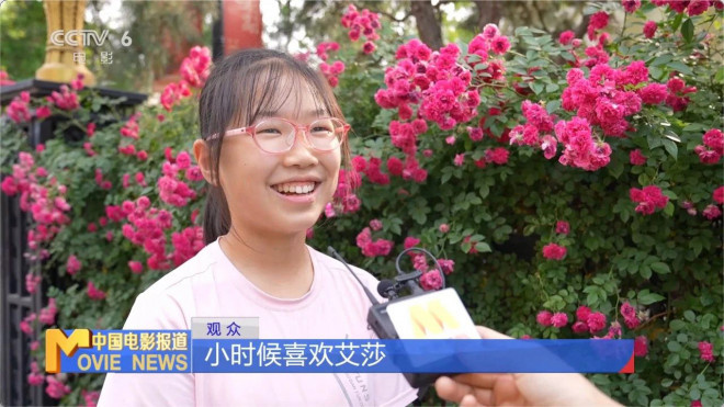 一对接受采访的母女向记者分享了她们与电影的故事,小朋友分享说自己喜欢《冰雪奇缘》里的艾莎,母亲说自己会给女儿买艾莎的蓝色裙子和魔法棒,去参加幼儿园的活动。