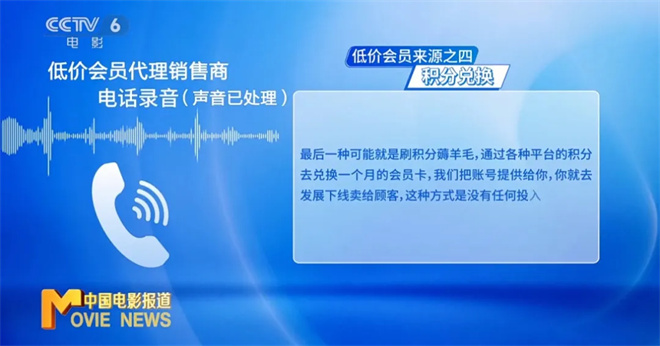 低价会员来源之四是积分兑换,许多人会刷积分薅羊毛,通过各种平台的积分去兑换一个月的会员卡。买家把账号提供给一些人,他们去发展下线,卖给客户,这种方式是没有任何投入的。