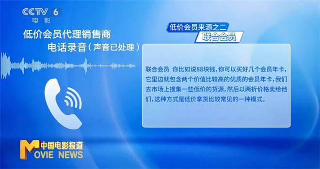 这些所谓低价会员从何而来呢?当记者以198元成为低价会员的代理商后,上游环节的工作人员介绍了四种操作低价会员的方式:平台打折、联合会员、共享合租、积分兑换。