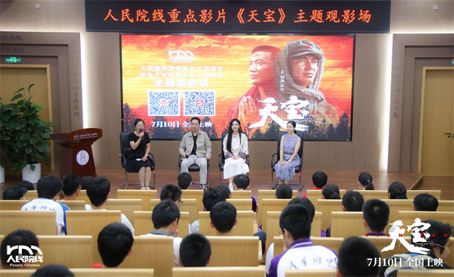 6月9日,导演刘劲携主演卓依娜姆、总制片人尔玛依娜等主创团队,亲临北京中华电影院与清华大学附属中学上地学校。映后交流环节,导演刘劲讲述了天宝的真实事迹:我们拍的,不是一段传奇,而是一种信仰的传承,是人类面对苦难时最光辉的选择。我们希望通过天宝的成长,展现红军长征的壮烈与深情,呈现那个时代年轻人面对理想和信仰时的选择与坚持。