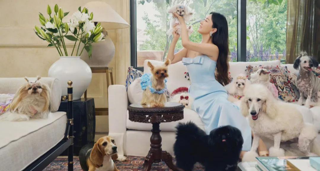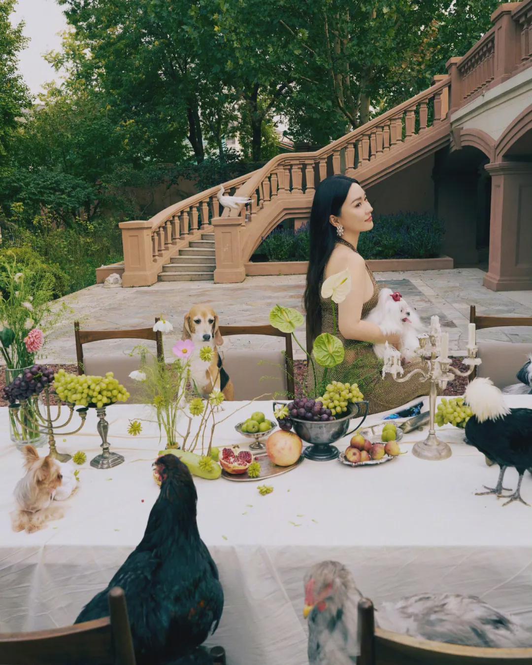 这一次她带10只狗8只鸡拍封面冲上热搜不仅展示了她本人的魅力,还带来了她家中的一群小动物伙伴。