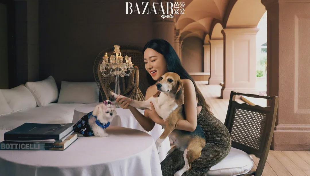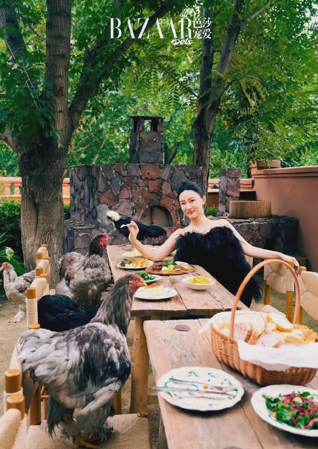 在芭莎放出的封面中,她与10只狗狗和8只鸡同框亮相,整个画面既温馨充满着活力还很治愈。