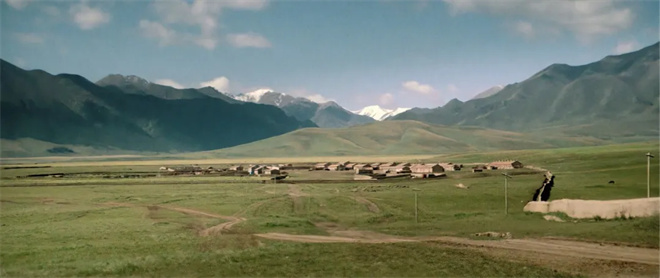 一望无际的敕勒川草原在晨光中苏醒。朱时茂饰演的许灵均驾着马车穿过草浪,远处牧民的剪影与天空的流云构成一幅1980年代的抒情诗画...