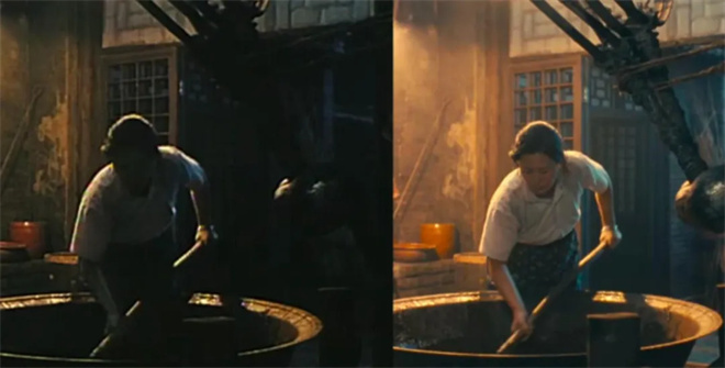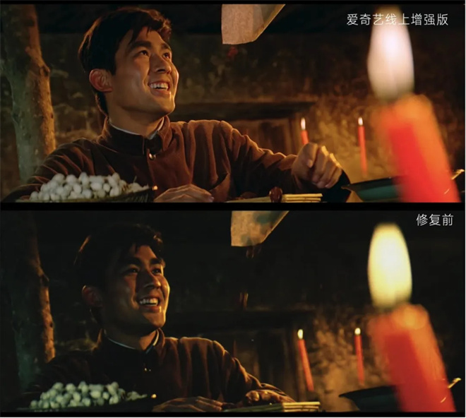 AI修复同样也考虑到了这一点,蒋紫东表示,爱奇艺AI算法会优先处理划痕污迹等硬伤,对底噪的处理会很谨慎,我们会保留画面的胶片颗粒感,不会让画面有一种磨皮过度或者滤镜过重的‘油腻感’。