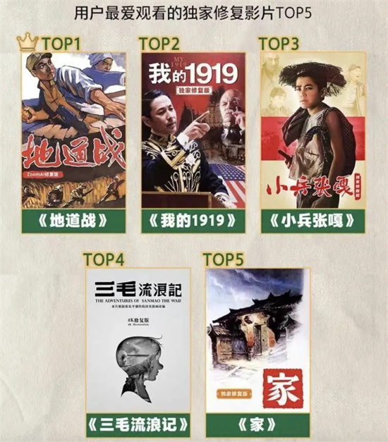 蒋紫东透露,爱奇艺修复后的《地道战》《小兵张嘎》《香魂女》等经典影片,修复前后都有好几倍的观看人数提升,青年群体的占比超过50%。从这些影片的弹幕和评论中,可以看到观众直接的反馈,有人写道:老电影的韵味,现代技术的清晰度,为我N刷经典提供动力。