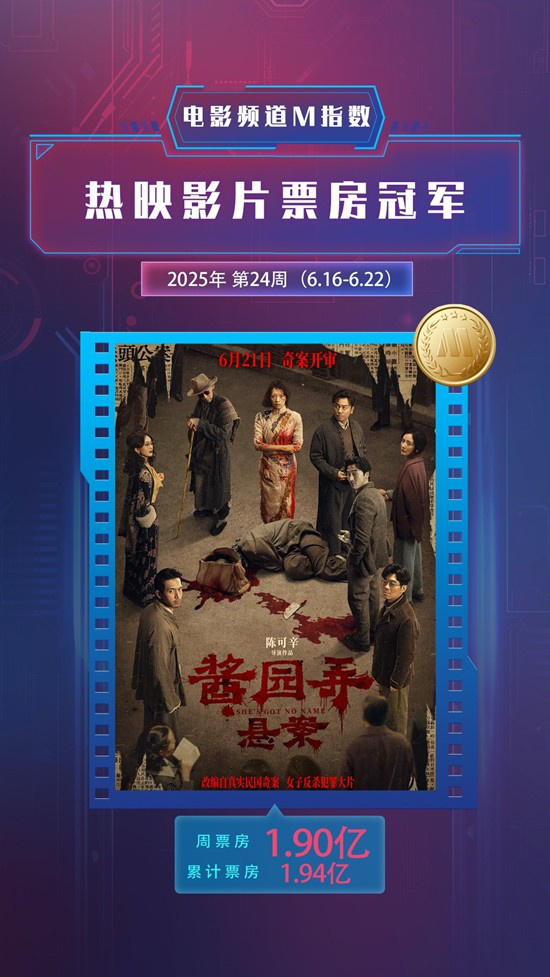 电影频道M指数2025年第24周热映影片票房榜发布