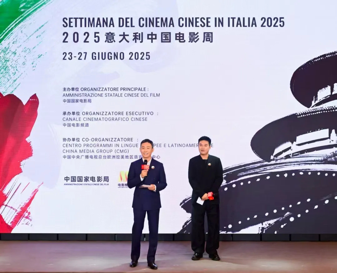 活动上,中国电影频道总编辑马佳、意大利国家电影学校校长德桑蒂斯共同启动2025意大利中国电影周。