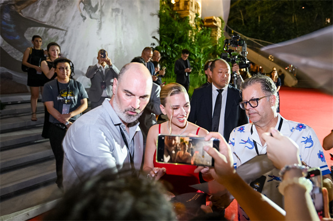 《侏罗纪世界:重生》中国首映礼 斯嘉丽红裙亮相