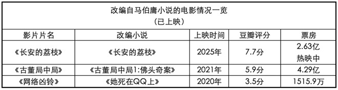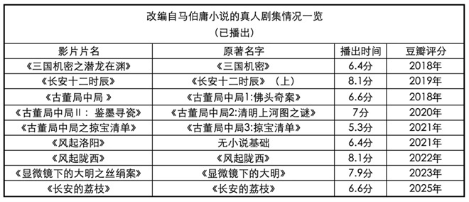 改编自马伯庸作品似乎已成为不少影视项目的品质保障,那么,这些顶着马伯庸光环的作品,其市场表现与观众反馈究竟如何?