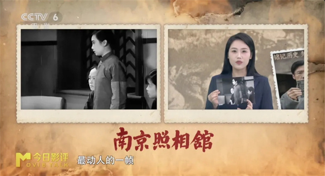 节目的最后,主持人晓丽以经典电影《姊妹花》的剧照为结束。照片定格了演员胡蝶与一位群演的身影。在《南京照相馆》中,演员高叶模仿这位群演的姿态拍下一张照片,最终通过后期技术合成为影片中最动人的一帧。
