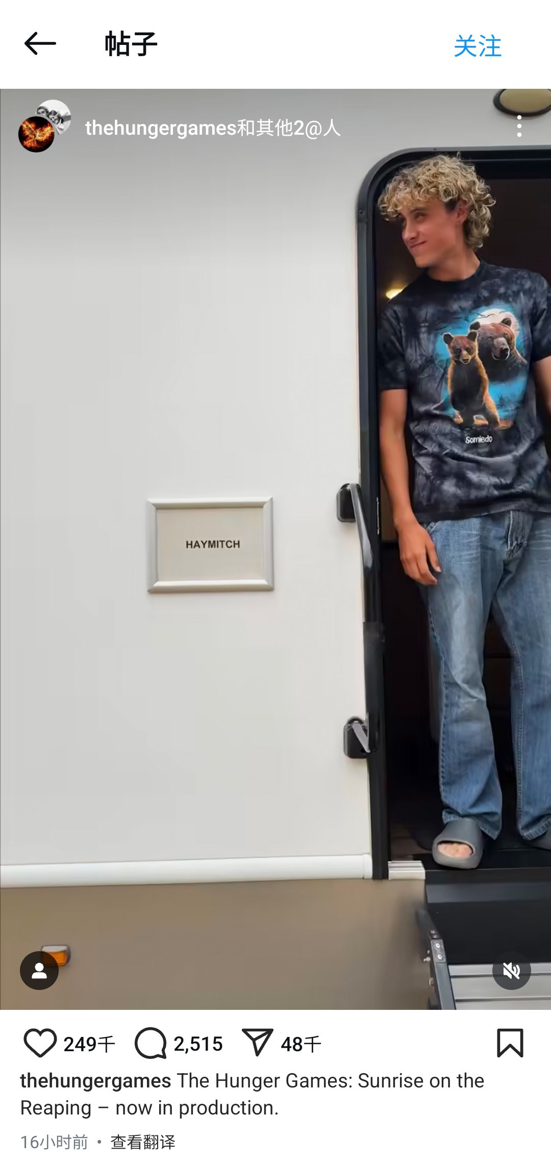 近日,《饥饿游戏》前传电影《饥饿游戏:收获日出》在社交平台上确认正式开拍,饰演年轻黑密斯的约瑟夫扎达现身现场。