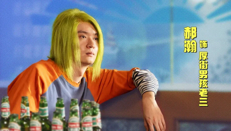 郝瀚此次在《奇遇》中饰演厚街男孩老三,留着一头潮流炫酷的彩色杀马特头发,极具亮点。