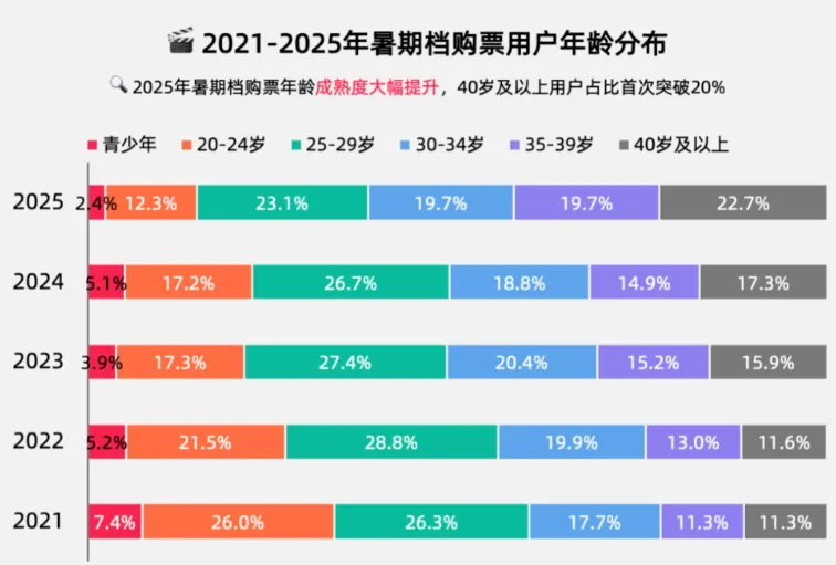 数据显示,暑期档40岁以上观众占比首次突破20%;与此同时,观众购票行为滞后,观影选择趋于谨慎理性。然而,这一现象并非暑期档所独有,而是近年观众群体趋于成熟的外在表征。