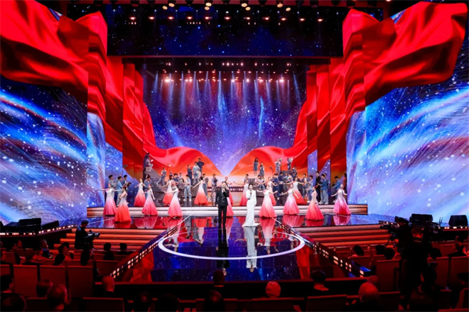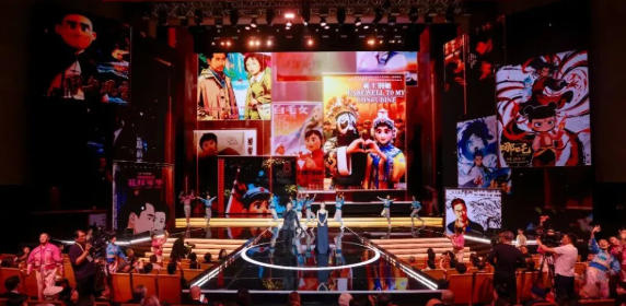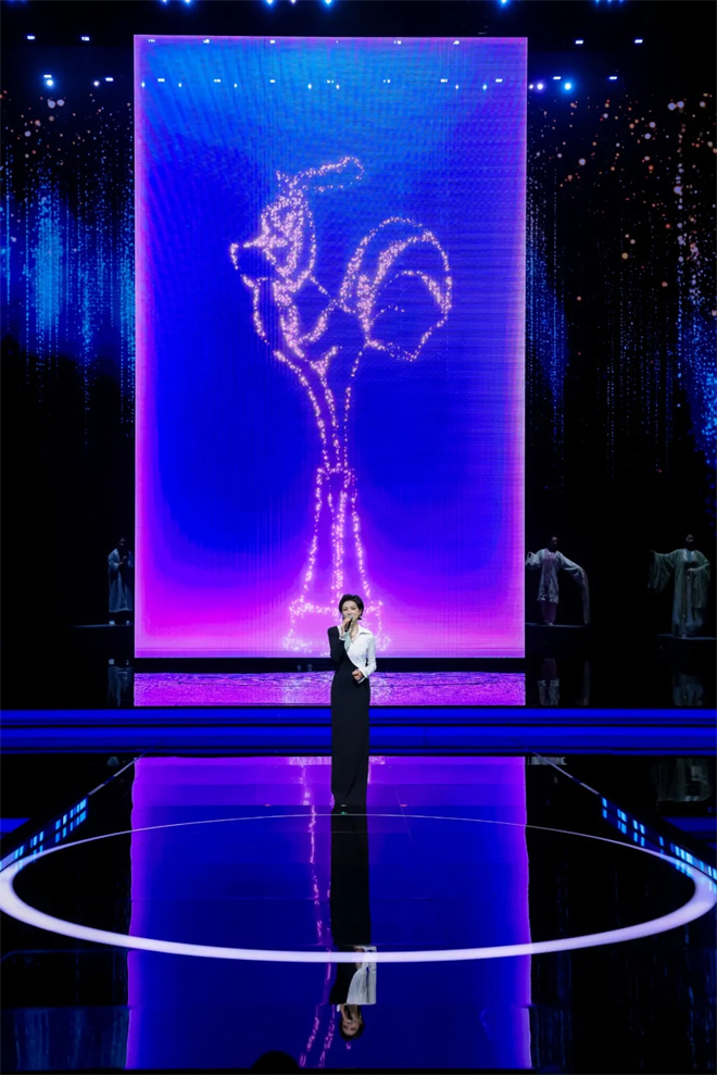 整台晚会也突破了镜框舞台的极限,与观众连成一体,设计层层升降的银幕与精准的装置布景,配合充满戏剧感的场景讲述,带领观众一起走进电影人丰富的精神世界。