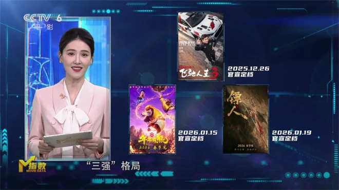 视线转向更远的档期,2026年春节档再添两部新片,系列动画《熊出没年年有熊》与漫改武侠《镖人:风起大漠》官宣入局,与此前已定档的《飞驰人生3》共同形成三强格局。