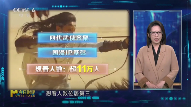 而电影《镖人:风起大漠》则以四代武侠人聚首、国漫IP巨制作等为前期宣传卖点,想看人数位居第三;