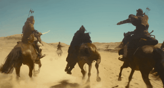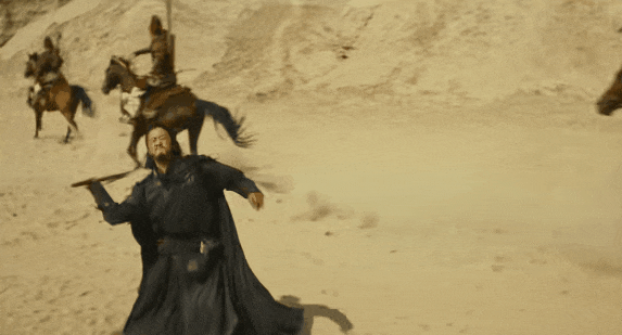 连绵起伏的苍茫沙丘、残阳如血映照下的戈壁旷野,群马疾驰时扬起的漫天黄沙遮天蔽日,近身搏杀间飞溅的碎石尘土裹挟着锋芒,每一处自然肌理都自带故事感。