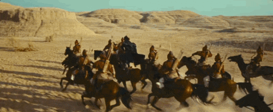 同时,影片也坚持远赴新疆实景拍摄,苍茫沙丘连绵起伏,残阳映照戈壁旷野,胡杨林枯枝虬曲,大沙暴漫天席卷,每一帧画面都以史诗般的气势,尽显中式美学大气磅礴。