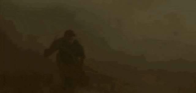 接下来的大漠遇截镖则将大漠地形融入动作设计之中,马陷沙坑,人滚沙坡,刀光剑影在漫天扬尘中时隐时现,氛围感拉满。