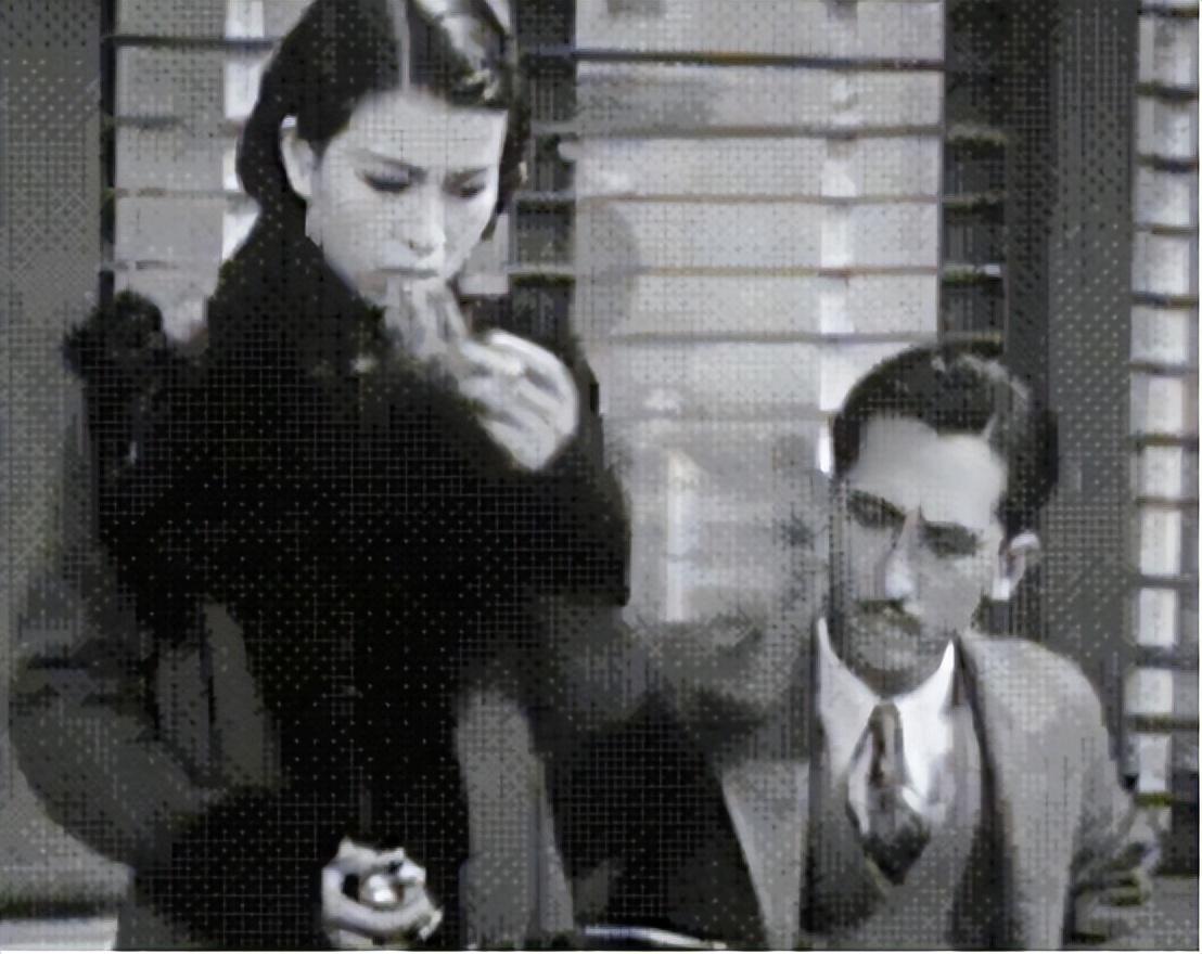 剧中,江青饰演的则是王俊三的一个“女友”,甚至连一个名字都没有。此女举止轻浮,虚荣,与茶栈经理王俊三的关系暧昧。这一点,从这个角色脖子上的项链,时髦的发型和娴熟的点烟动作上,都可以得到验证。