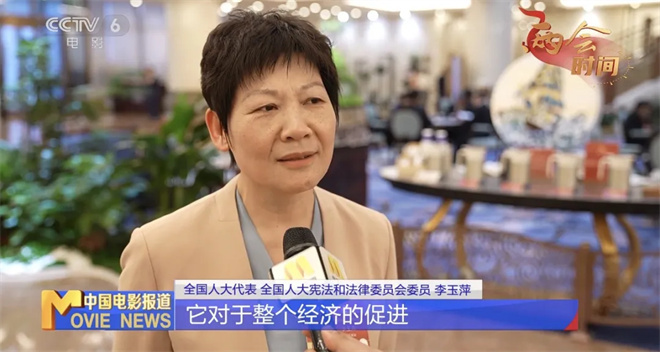 全国人大代表、全国人大宪法和法律委员会委员李玉萍认为,电影对于整个经济的促进作用会非常大,也能够营造特别好的文旅氛围。