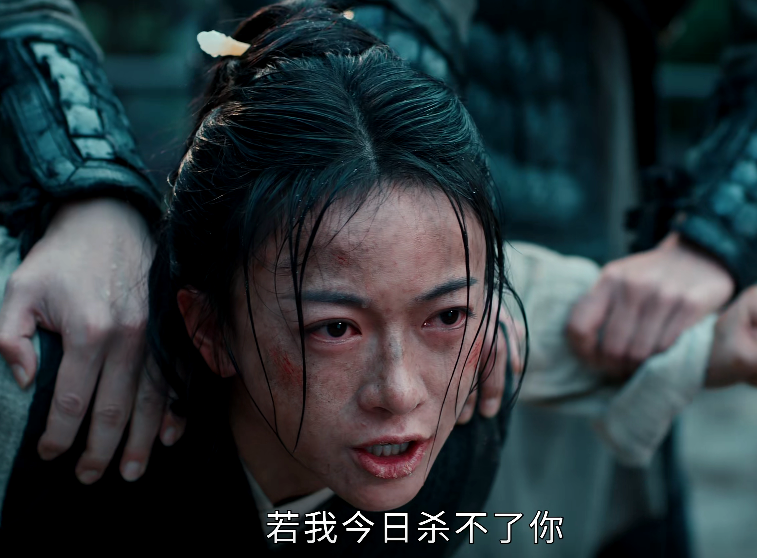刺杀慕容璟和失败,被摁在地上的眉林眼神中充满了仇恨,带着愤恨与绝望的泪水大颗落下,声嘶力竭的模样将角色内心刻骨的恨意展现的淋漓尽致。