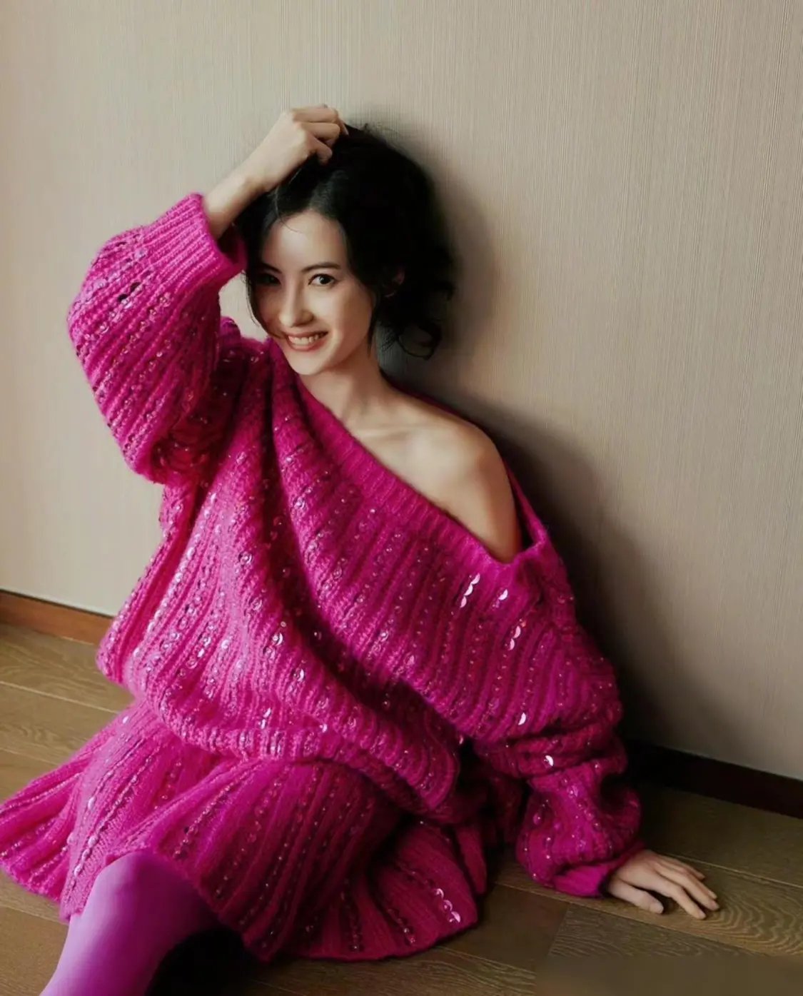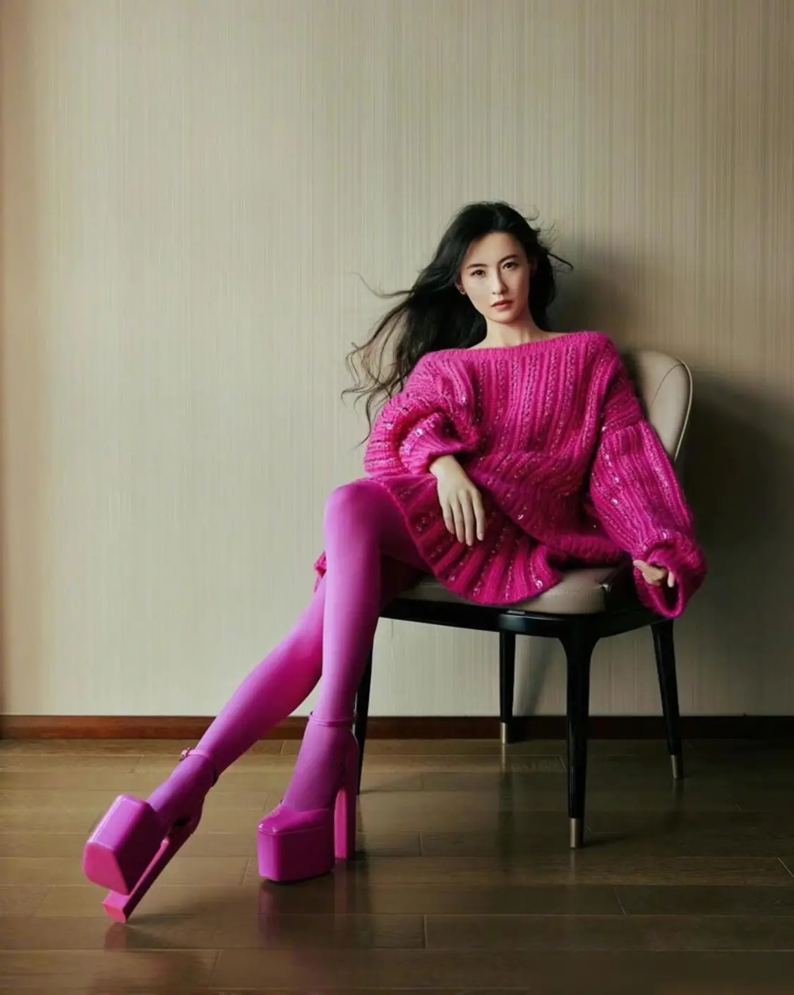果然明星就是明星,即使是芭比粉都能穿得比其他颜色好看很多!