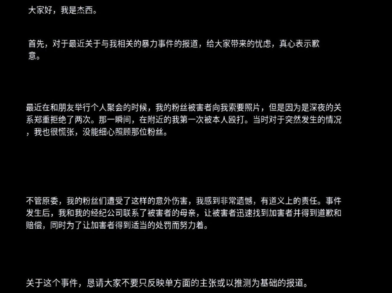 但这位粉丝居然遭遇了Jessi同行人员的拳打脚踢和言语辱骂。