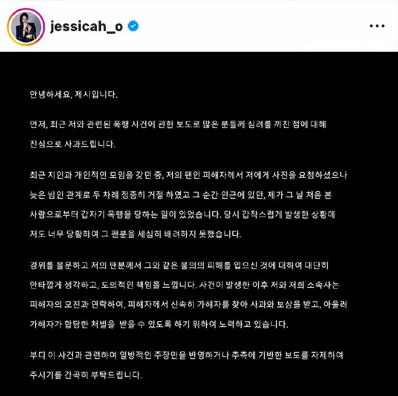 而Jessi的经纪公司则回应表示,肇事者不是韩国人,是Jessi制片人的中国朋友。