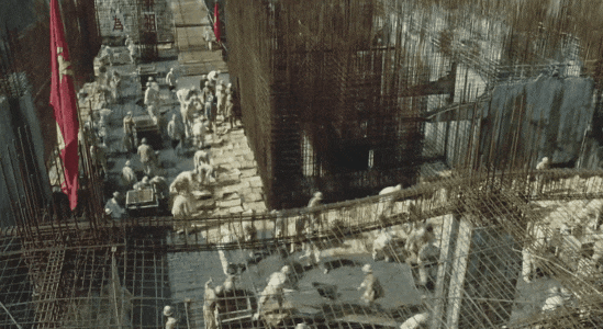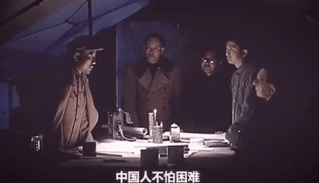 电影中,冯石将军带领战士们在建设现场挥汗如雨的呐喊声,振奋人心。