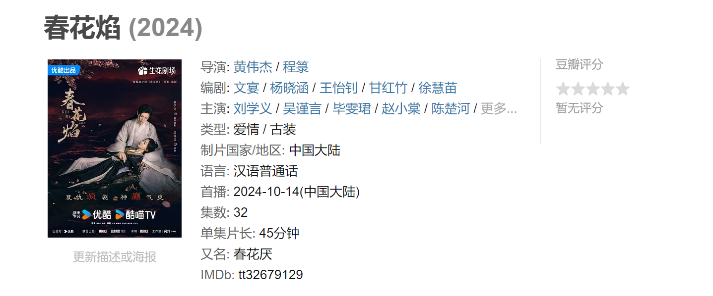 《春花焰》是典型的流量热剧操作模式,人气小说IP 流量演员阵容,不管是故事剧本还是演员好感度,基本上都有保证,几个制作方基本上是奔着稳赚不亏的目的去的。