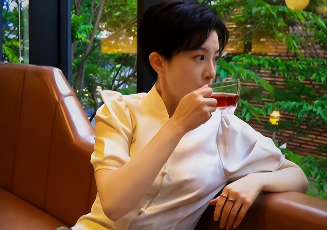 一个人坐在豪宅窗边,手捧热茶用看淡红尘的眼神望着远处,仿佛没有什么事能再让她苦恼。