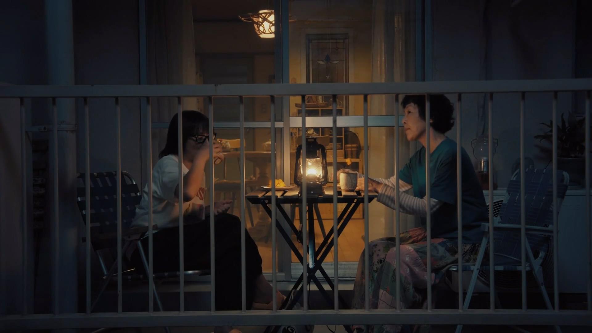 小奈独居,野枝和年迈的父母同住。二十年前《西瓜》里年轻的两人,更年期时在团地重逢。两个老阿姨,为老老阿姨们更换纱窗。精神头还很健旺的老老阿姨们腰杆笔挺,心安理得地在“小姑娘们”换纱窗时高声唱歌。在她们眼里,归巢的野枝和小奈永远是“小姑娘”。