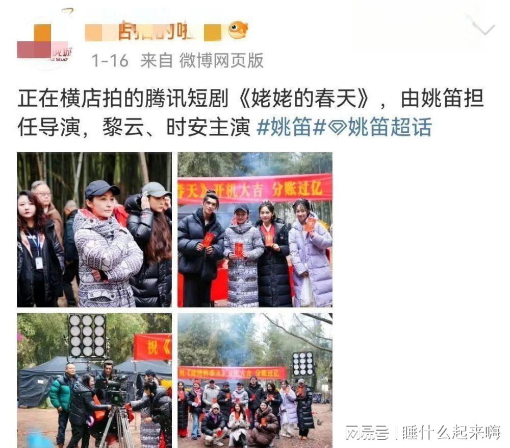 2024年初,姚笛突然官宣转行当导演去了,她执导的短剧《姥姥的春天》已经开始拍摄了。