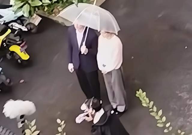 在第一张照片中,应该是在拍摄男女主角的戏份,吴慷仁与孙俪撑着一把雨伞。虽然照片是俯拍的角度,略微糊糊,但根据双方的大致轮廓、体态,以及之前孙俪在片场的路透造型,很容易判断出来。