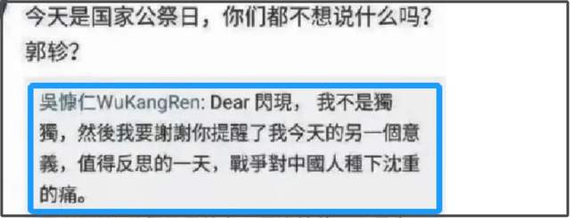 吴慷仁粉丝还甩出截图,力证吴慷仁一贯立场正确,没有继续走错路、做错事。其实很简单,只要他在个人社交平台大方发个声,表明自己是一个中国人,支持统一,那么一切质疑也会随之化解。可惜目前为止,仍没有看到吴慷仁有这方面的言行。