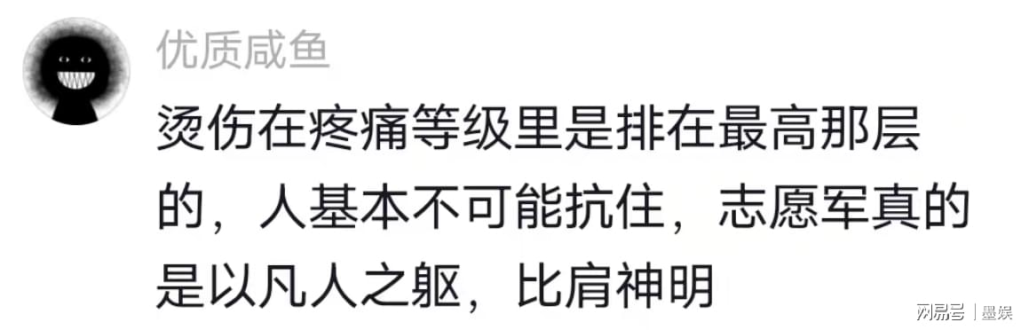还有邱少云牺牲那一段,通过对他的表情拍摄,还有战友们的反应,把牺牲的壮烈感刻画得很到位,感染力十足。看这段的时候,我真的感觉我们的人民战士很伟大!
