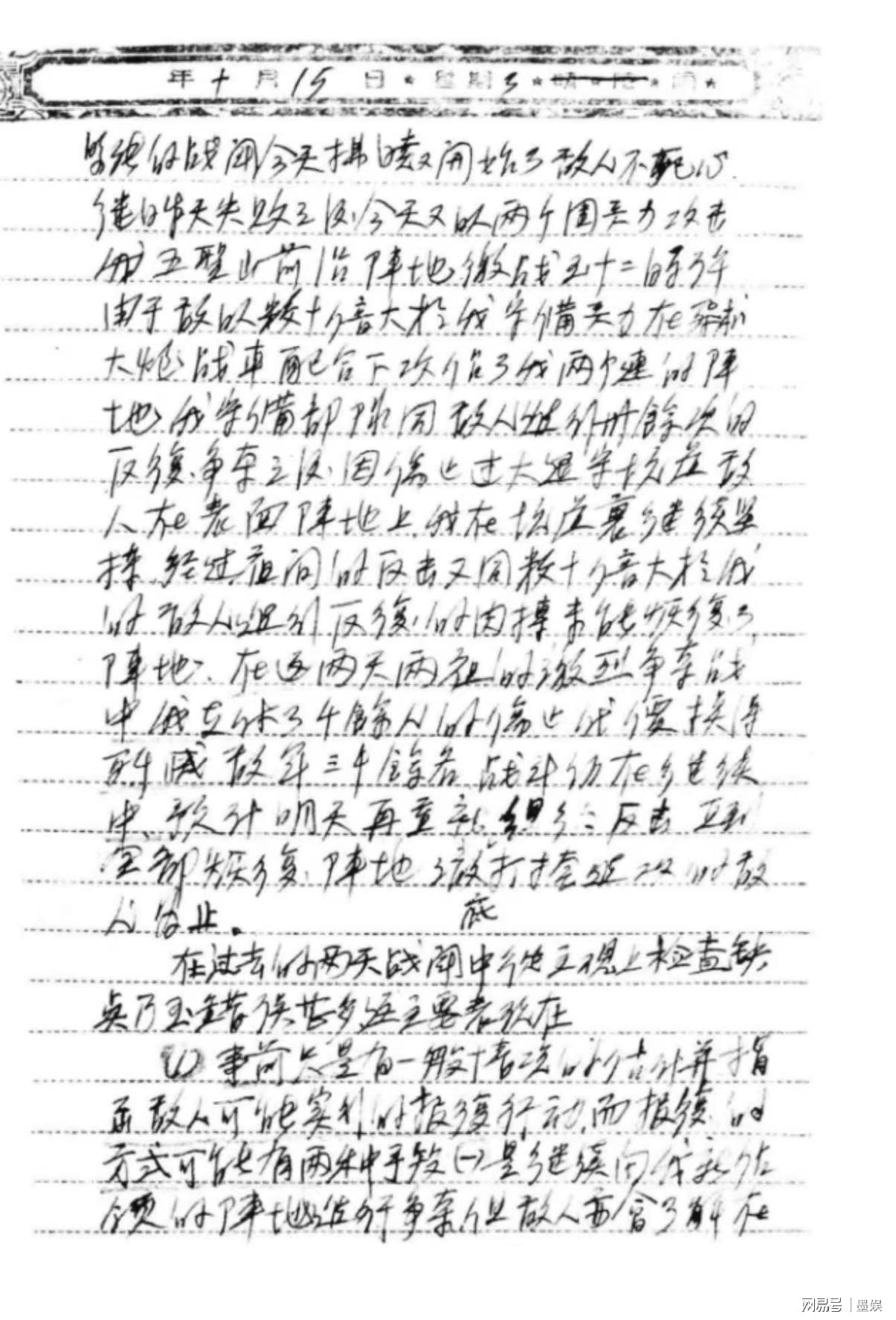 从他的文字中可以感受到当时情况的紧迫,他说“敌人一片片倒了下去,但后面的敌军仍然继续往前冲”,光是看这段文字就已经能想象战场上美军如潮水般涌来的恐怖画面。而这些都被电视剧原封不动地拍出来了,剧里的精彩程度完全不亚于秦基伟军长笔下的文字。“1952年10月16日敌人今天仍占住我们一个营的阵地。这是战斗的第三天,敌人今天的兵力约两个团不如昨天兵力大,但这些都是新换来的敌军还表现得特别的疯狂,伪军采取集团冲锋死一层又上来一个梯队,以优势的兵力攻占我一个点。当敌人集团冲锋的时候我以榴弹炮采取齐袭,眼看敌人一片片的倒了下去,但后面的敌军仍然继续往前冲,这就是敌人的人海战术。”