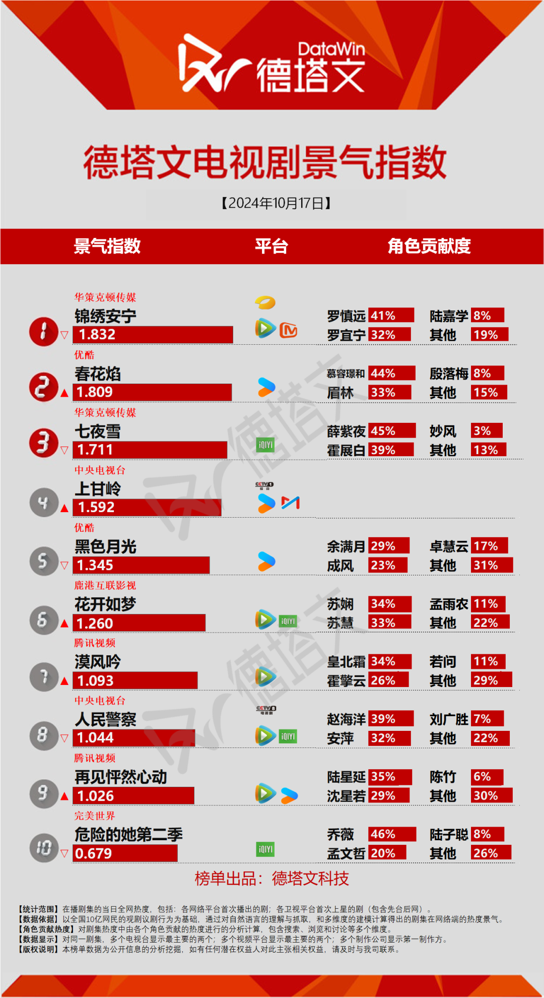 4、数据覆盖首次上星的电视剧和首次播出的网剧。