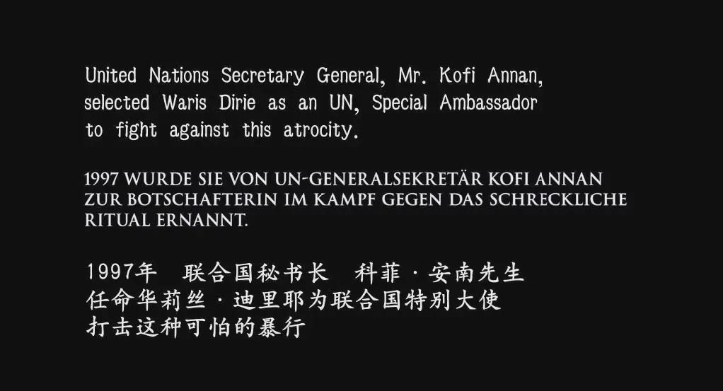 1997年,联合国时任秘书长科菲·安南任命华莉丝为特别代表,致力于终结“割礼”这一令人痛心的习俗。