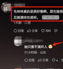 此外,廖青染在剧中饰演毛林林,她的表现也得到了网友的称赞。