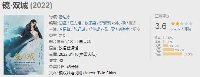 沧月最拿得出手的《镜》系列作品之一《镜双城》,豆瓣评分仅有3.6,别说及格,这个分数,简直就是烂到家了。