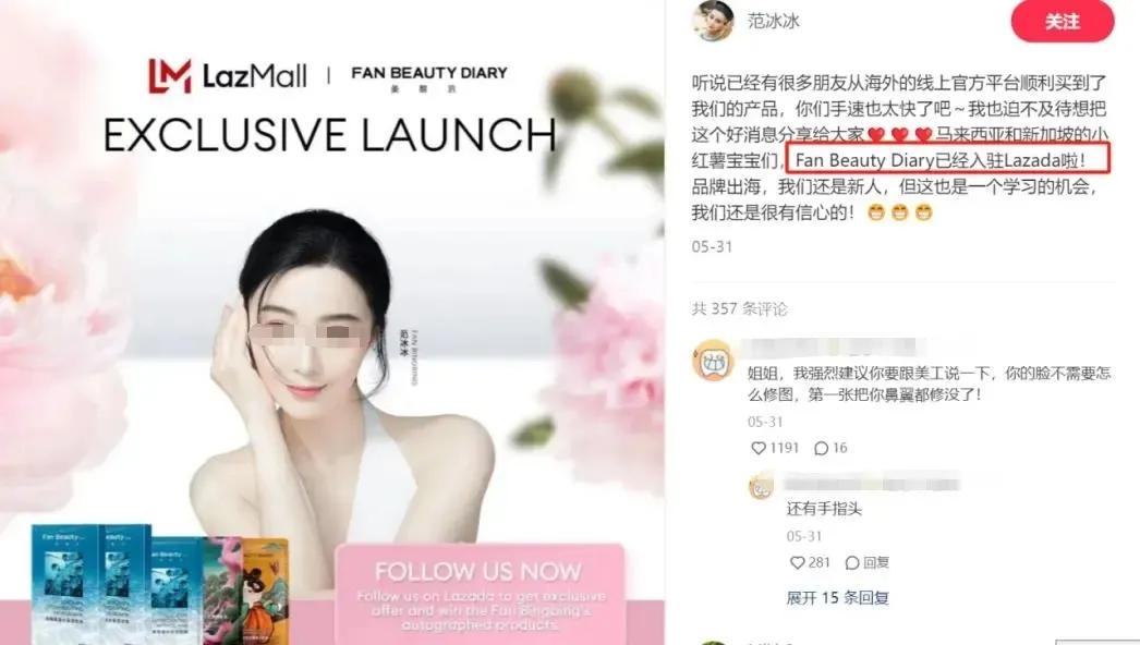 再加上今年的六月份,范冰冰还高调地宣布旗下的彩妆品牌Fan Beauty Diary正式入驻TikTok,试图在国际上兑现曾经的影响力,但她的出海淘金路并不顺利。