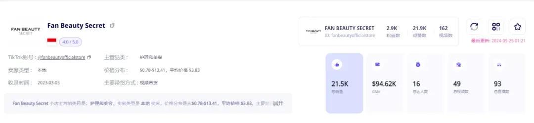 第三方数据显示,截至今年10月初,出海三个月以来, Fan Beauty Secret小店总销量才2.1万单,总销售额预估9.5万美元,折合人民币不到70万元,与范冰冰的“咖位”大相径庭。
